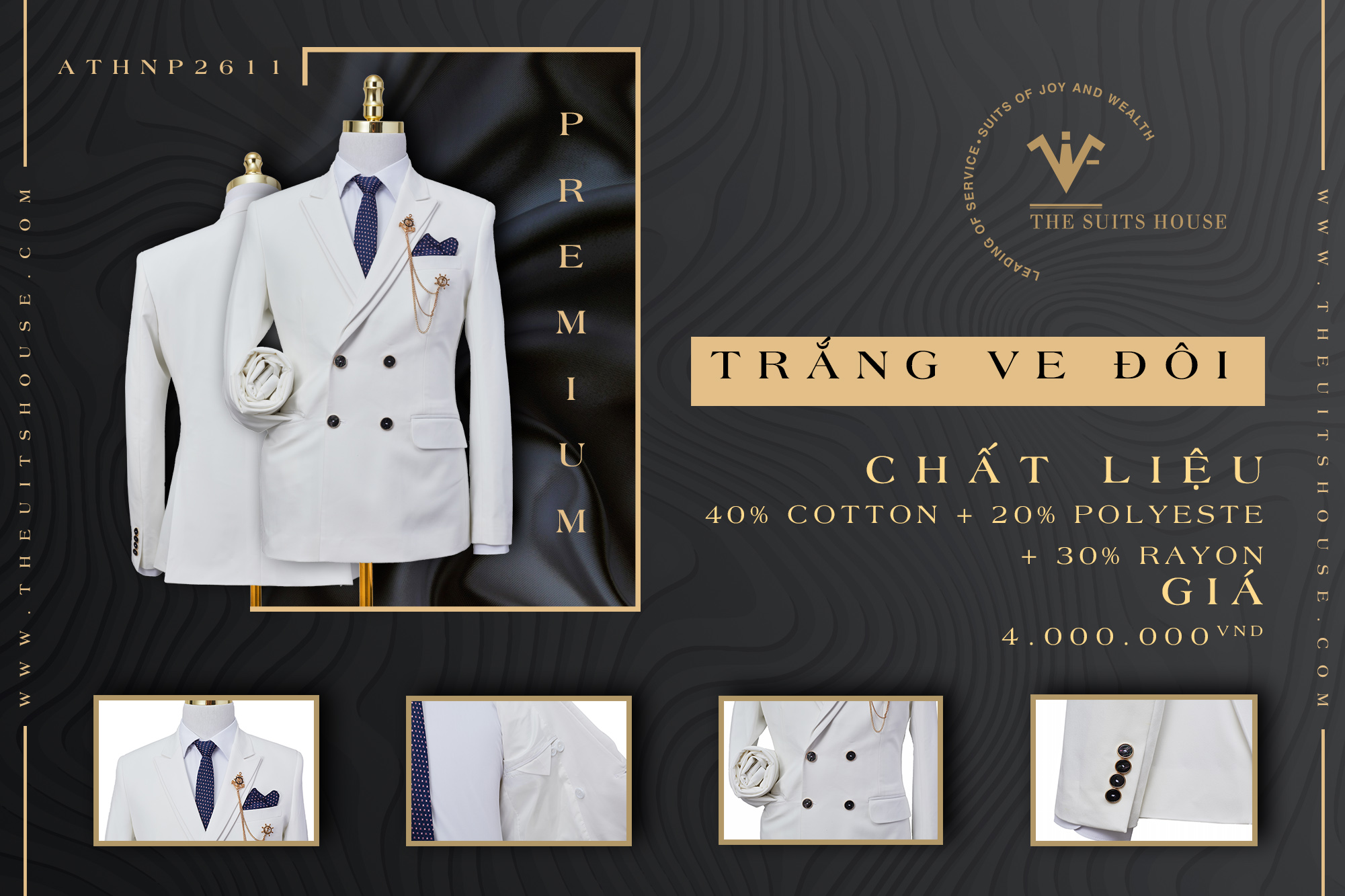 Trắng có lẽ là sắc màu nhã nhặn nhất trong bảng màu. Đặc biệt đối với phiên bản suit trắng ve đôi từ Nhà SUITS thì đây chính là sự lựa chọn phù hợp cho các sự kiện cocktail hoặc bữa tối trang trọng.
