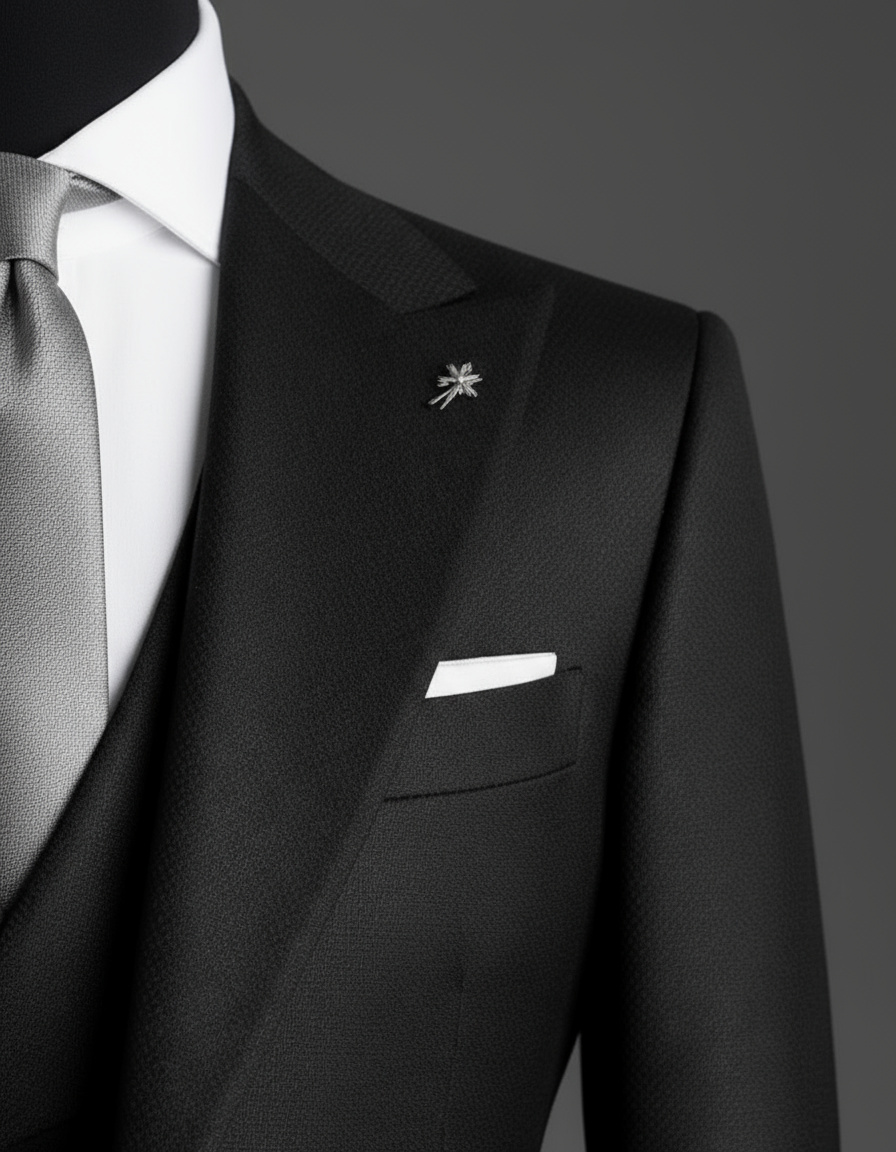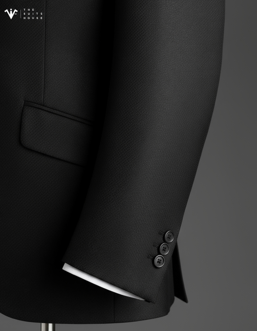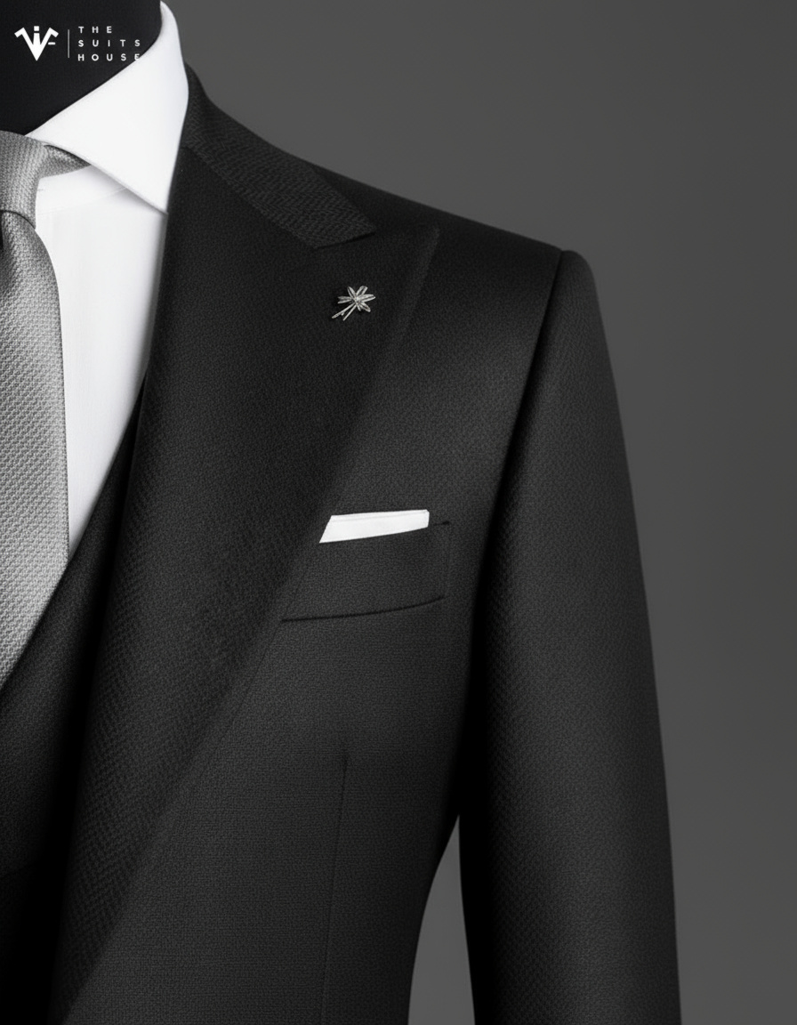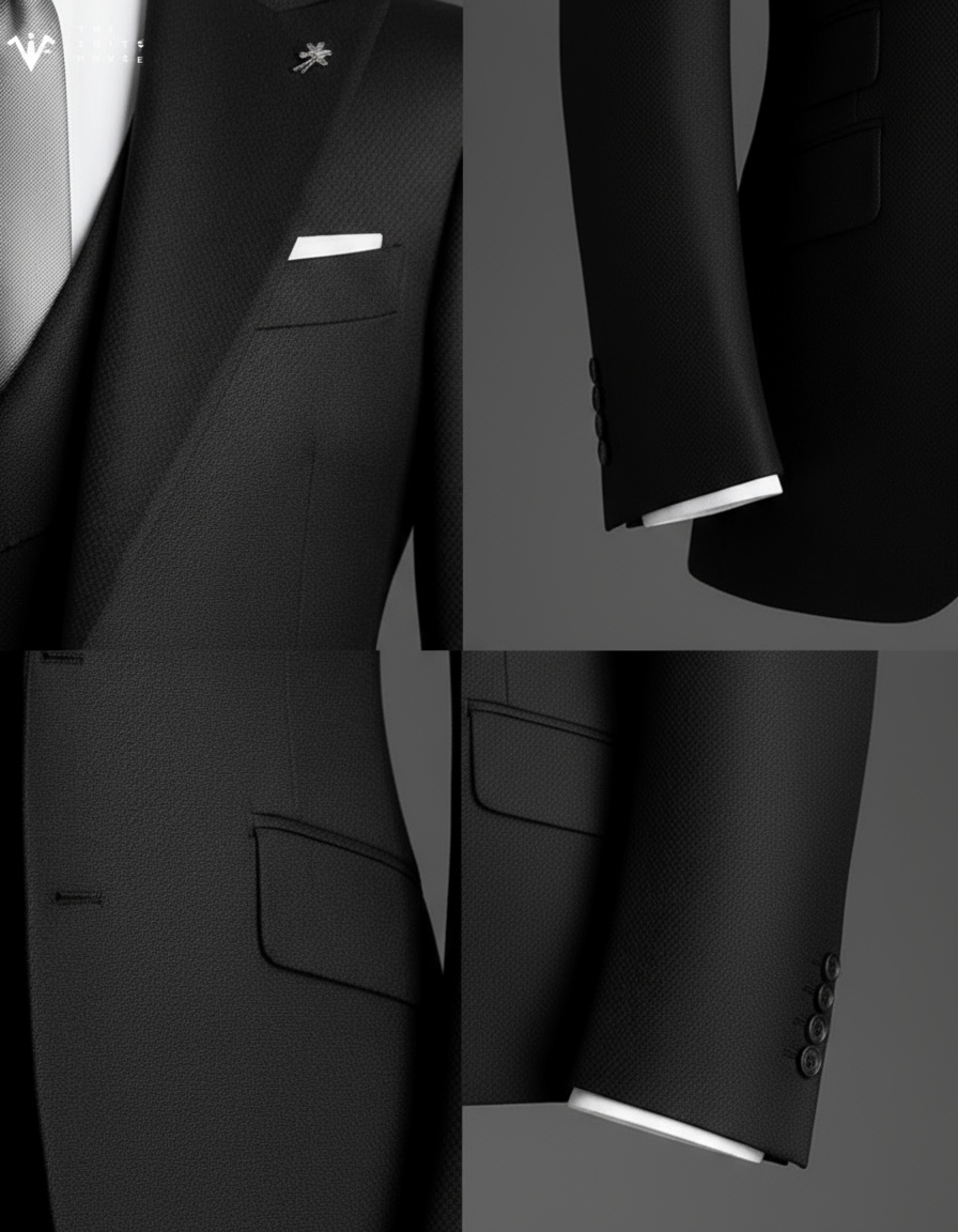 Từng chi tiết – từ đường may tỉ mỉ thủ công, nút khuy chọn lọc, đến phụ kiện cài ve áo ánh bạc – đều thể hiện tinh thần “đo ni đóng gu – định hình phong thái” mà The Suits House theo đuổi.