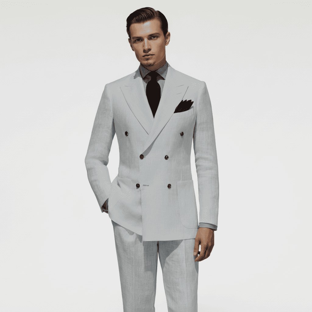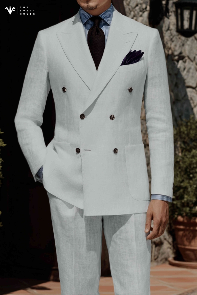 Không chỉ là một bộ suit, đây là tuyên ngôn về phong thái của người đàn ông hiểu rõ sức mạnh của sự chỉn chu. Double Breasted Linen Suit mang tinh thần cổ điển xen lẫn hiện đại, thể hiện qua đường cắt gãy gọn, vai áo cân đối và chất liệu linen thoáng nhẹ giúp người mặc luôn giữ được vẻ thanh thoát trong mọi hoàn cảnh.