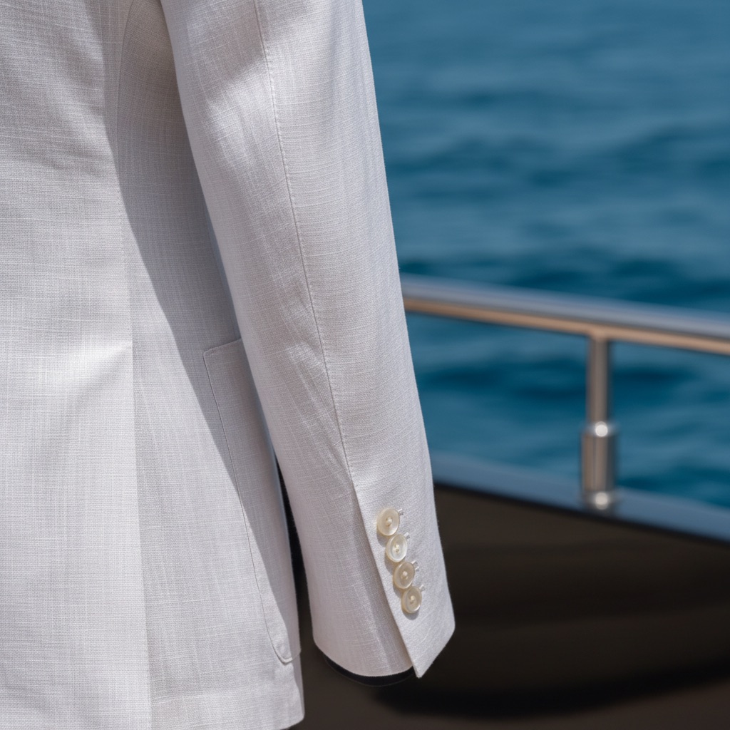 Không gian trình diễn trên du thuyền sang trọng giữa đại dương xanh thẳm càng tôn lên vẻ đẳng cấp của bộ trang phục. Đây không chỉ là một bộ vest, mà là tuyên ngôn của lối sống thượng lưu và gu thẩm mỹ vượt thời gian. Dành cho những quý ông yêu thích sự lịch lãm, bộ vest này là lựa chọn lý tưởng cho các dịp giao tiếp quan trọng, sự kiện cao cấp hay đơn giản là để khẳng định vị thế cá nhân.