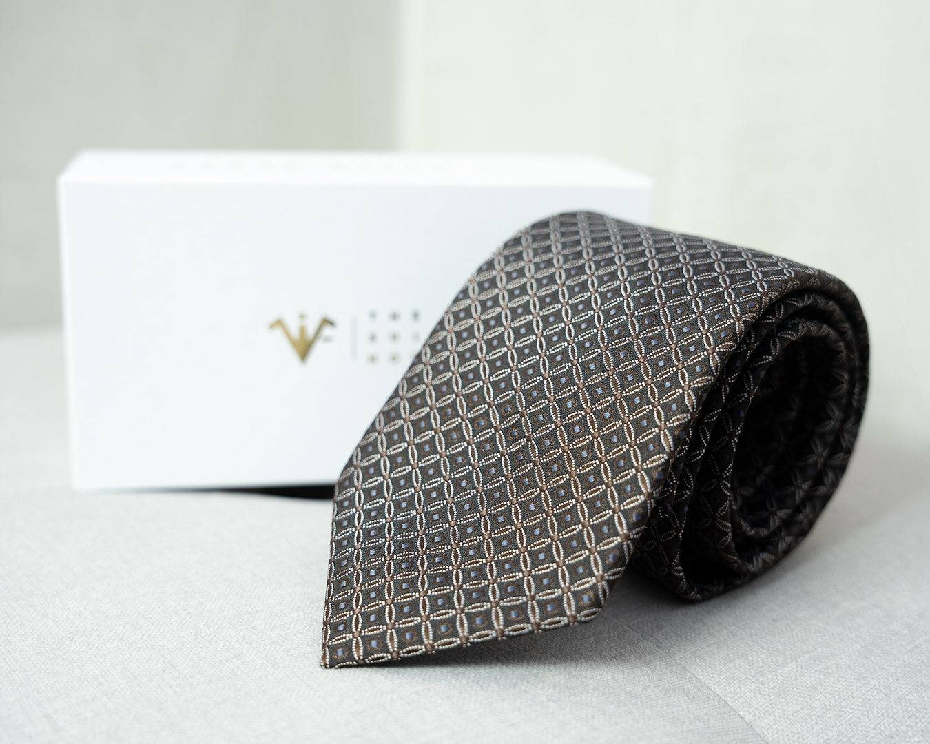 Cà vạt/ Caravat cao cấp THE SUITS HOUSE nâu họa tiết hình thoi bản 7 - 9cm