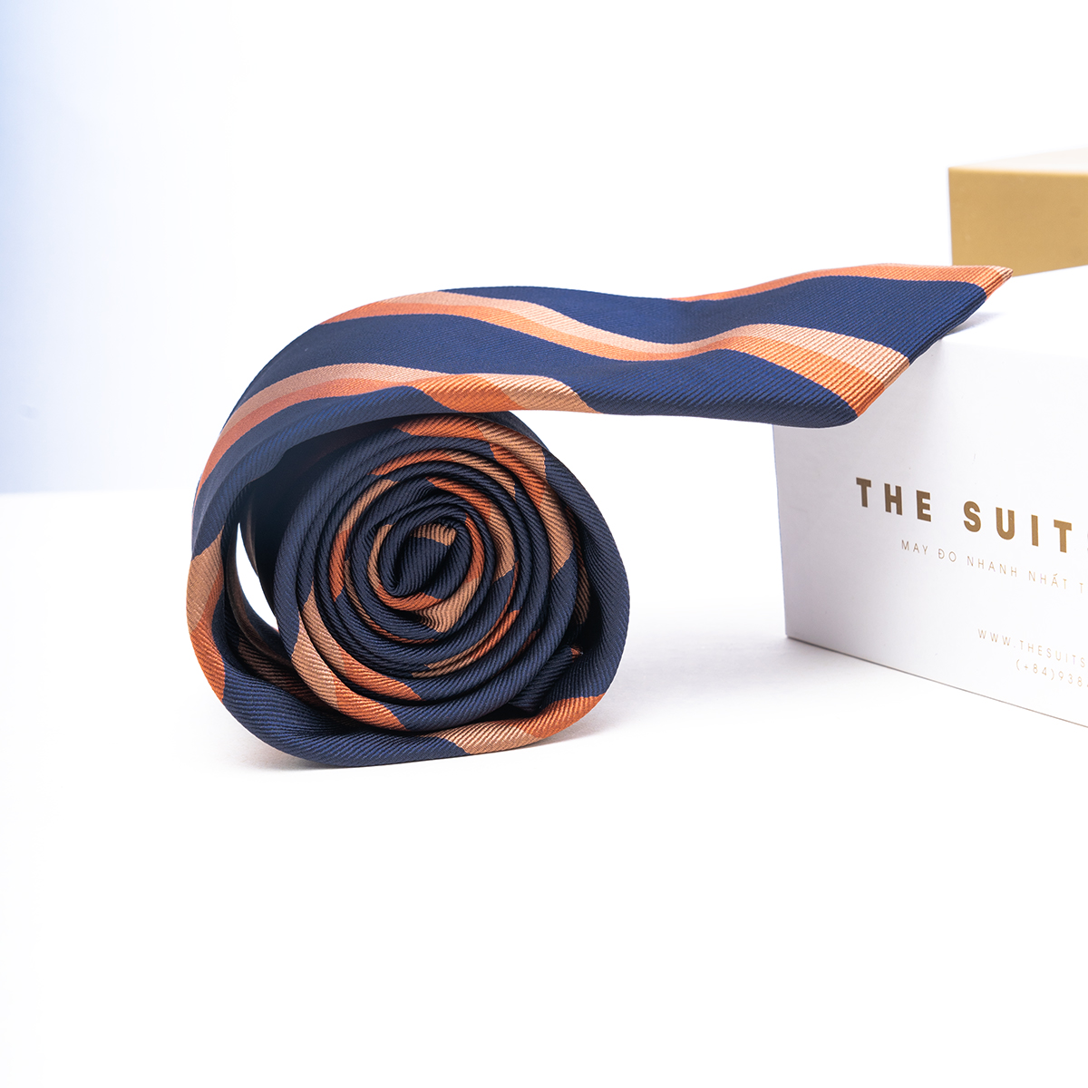 Cà vạt/ Caravat cao cấp THE SUITS HOUSE xanh sọc cam xanh bản 7 - 9cm