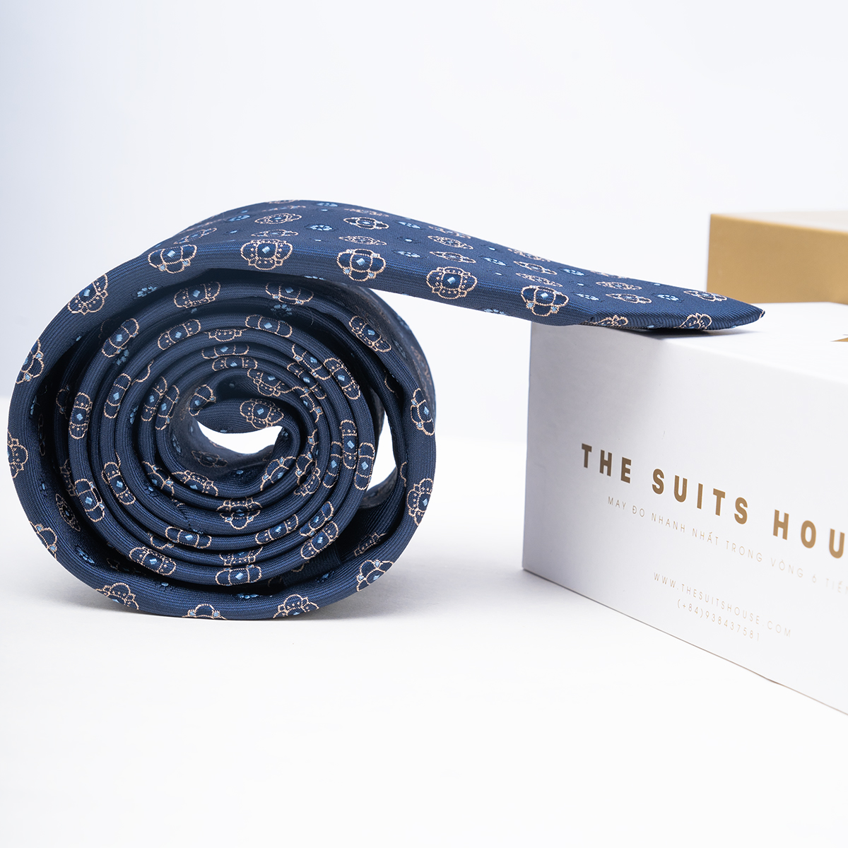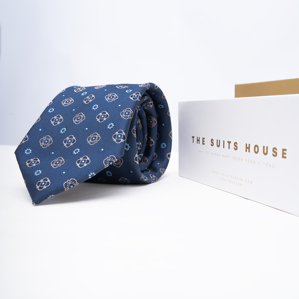 Cà vạt/ Caravat cao cấp THE SUITS HOUSE xanh dương họa tiết chấm vuông bản 7 - 9cm