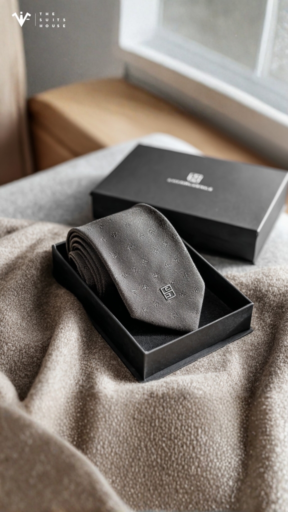 Tinh tế trong từng sợi dệt – Charcoal Grace Tie mang sắc xám trầm sang trọng, biểu trưng cho sự đĩnh đạc và điềm tĩnh của người đàn ông bản lĩnh. Bề mặt vải woven cao cấp với họa tiết điểm nhấn nhỏ tinh xảo tạo hiệu ứng chiều sâu, giúp tổng thể trở nên nổi bật mà vẫn giữ được nét thanh lịch. Logo kim loại TSH tinh gọn ở đuôi cà vạt khẳng định đẳng cấp của một quý ông biết trân trọng chi tiết.