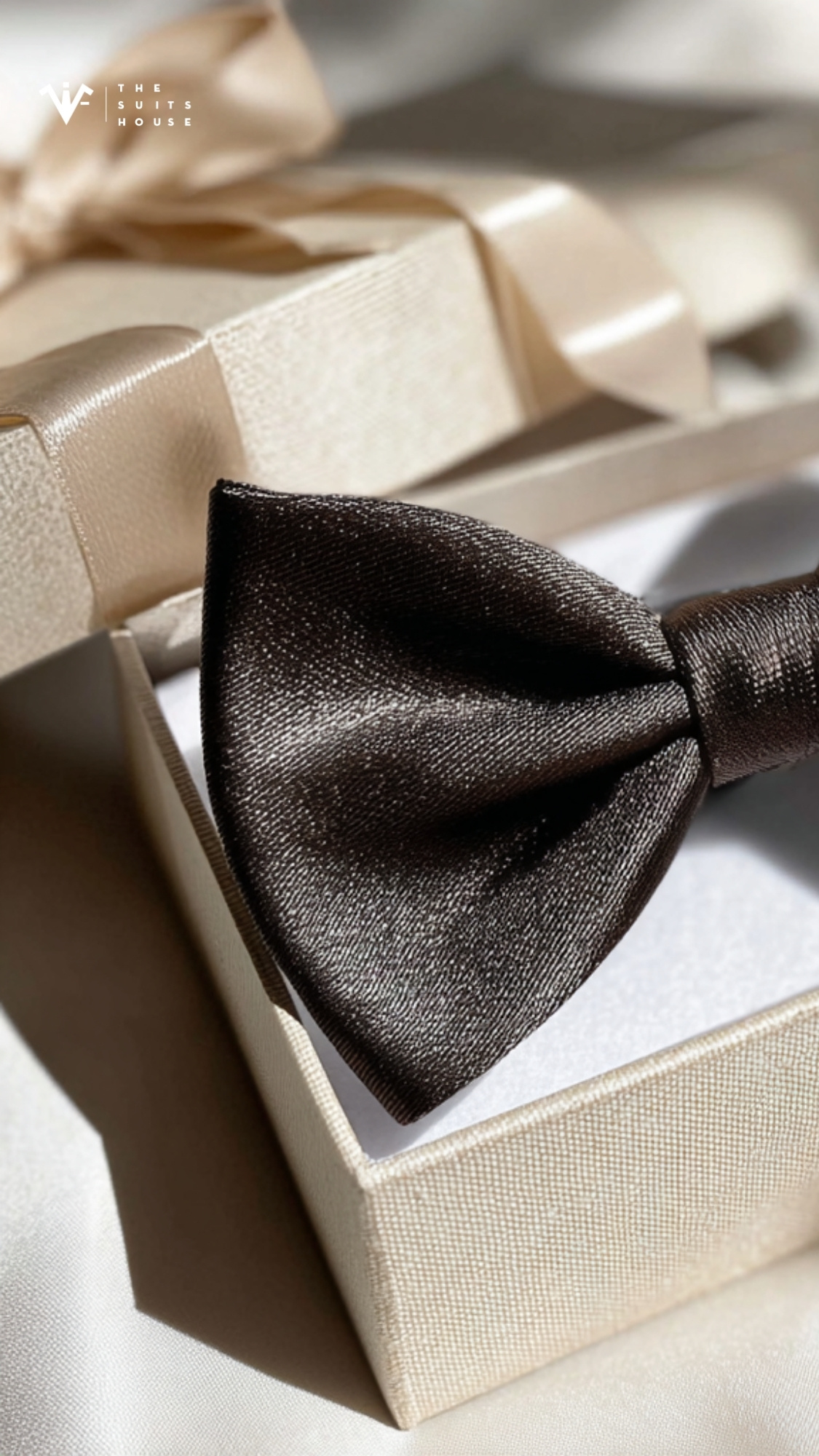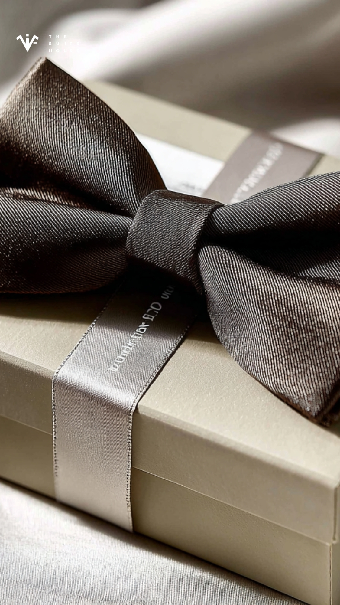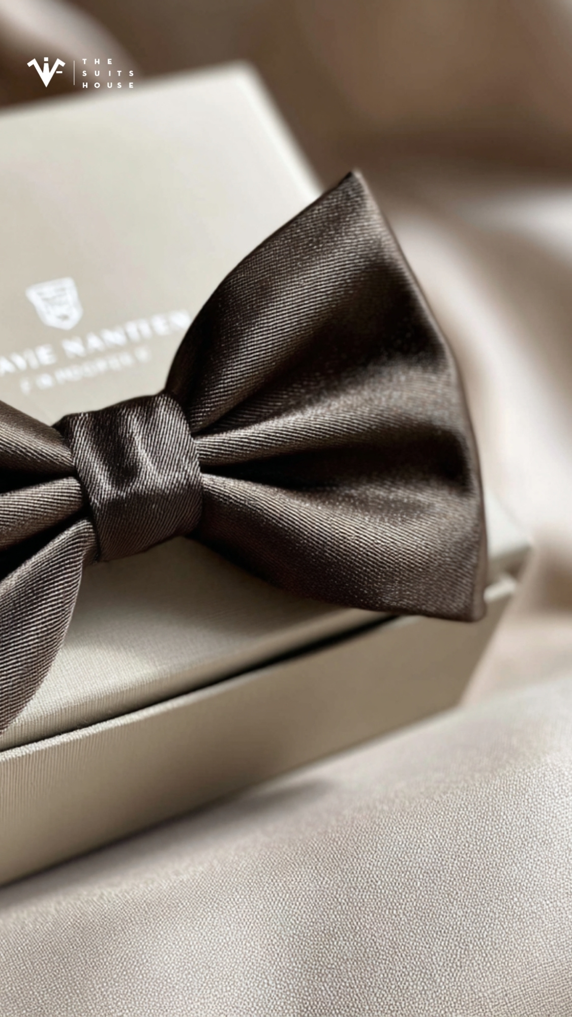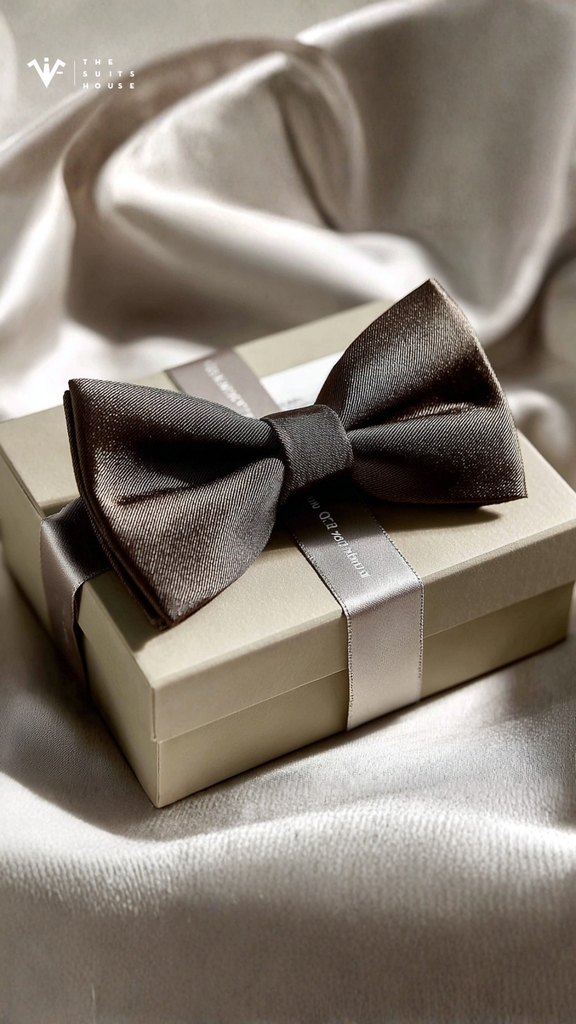 Tinh giản nhưng đầy khí chất, chiếc nơ lụa màu xám than là biểu tượng của sự đĩnh đạc và bản lĩnh đàn ông hiện đại.