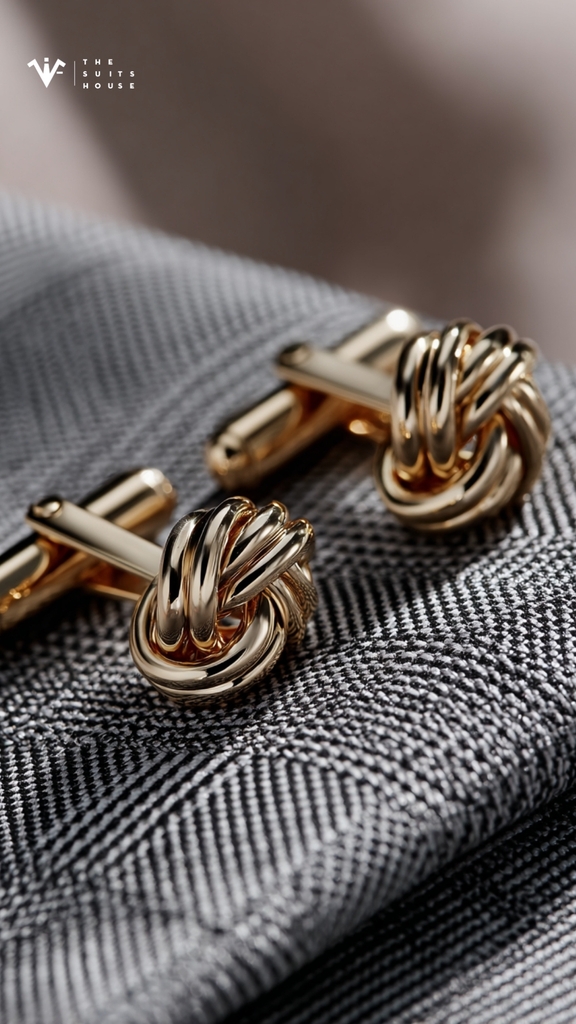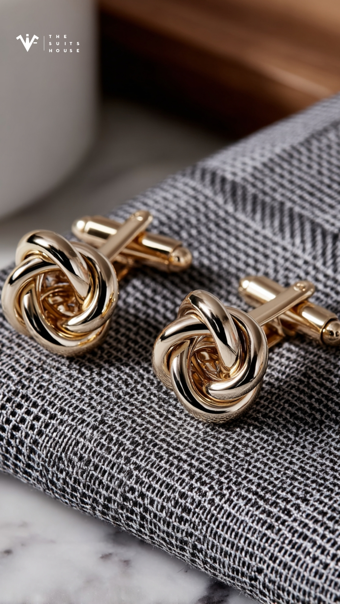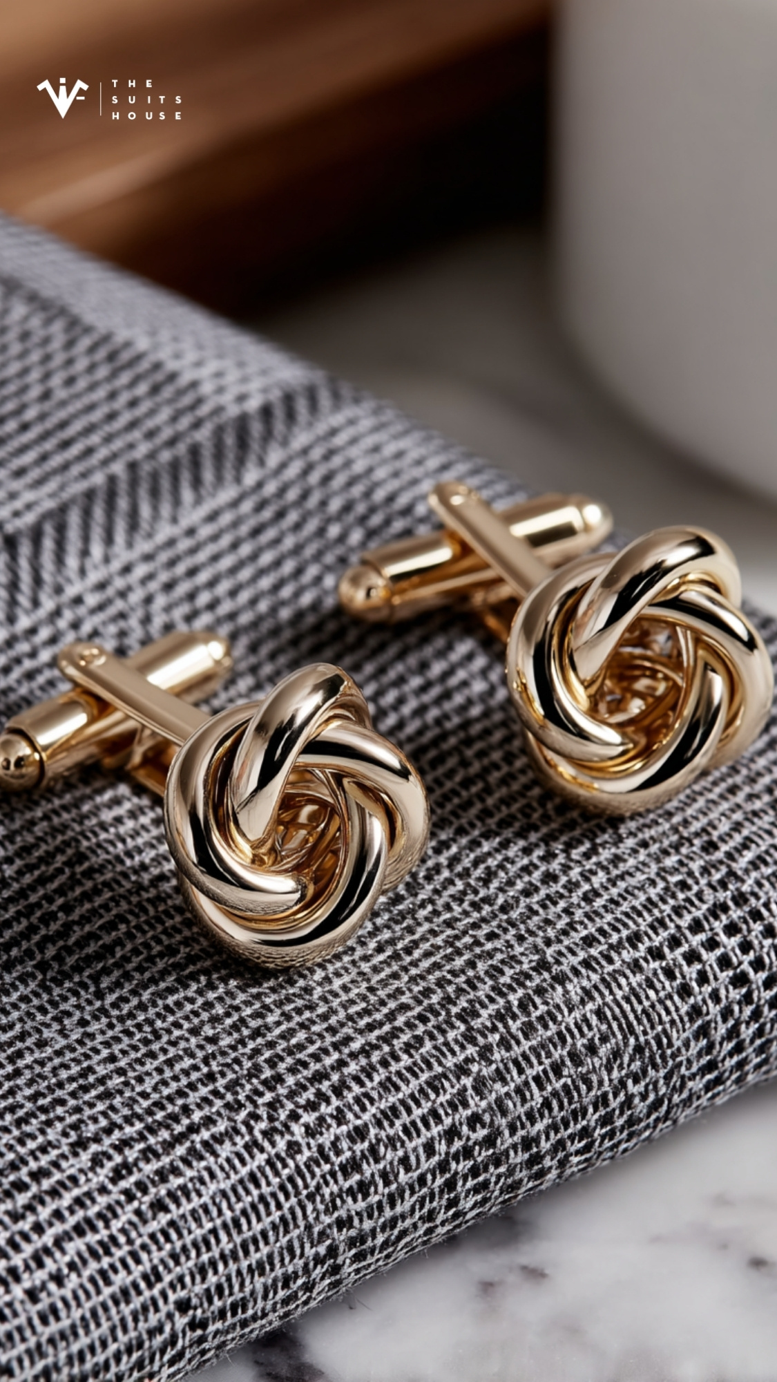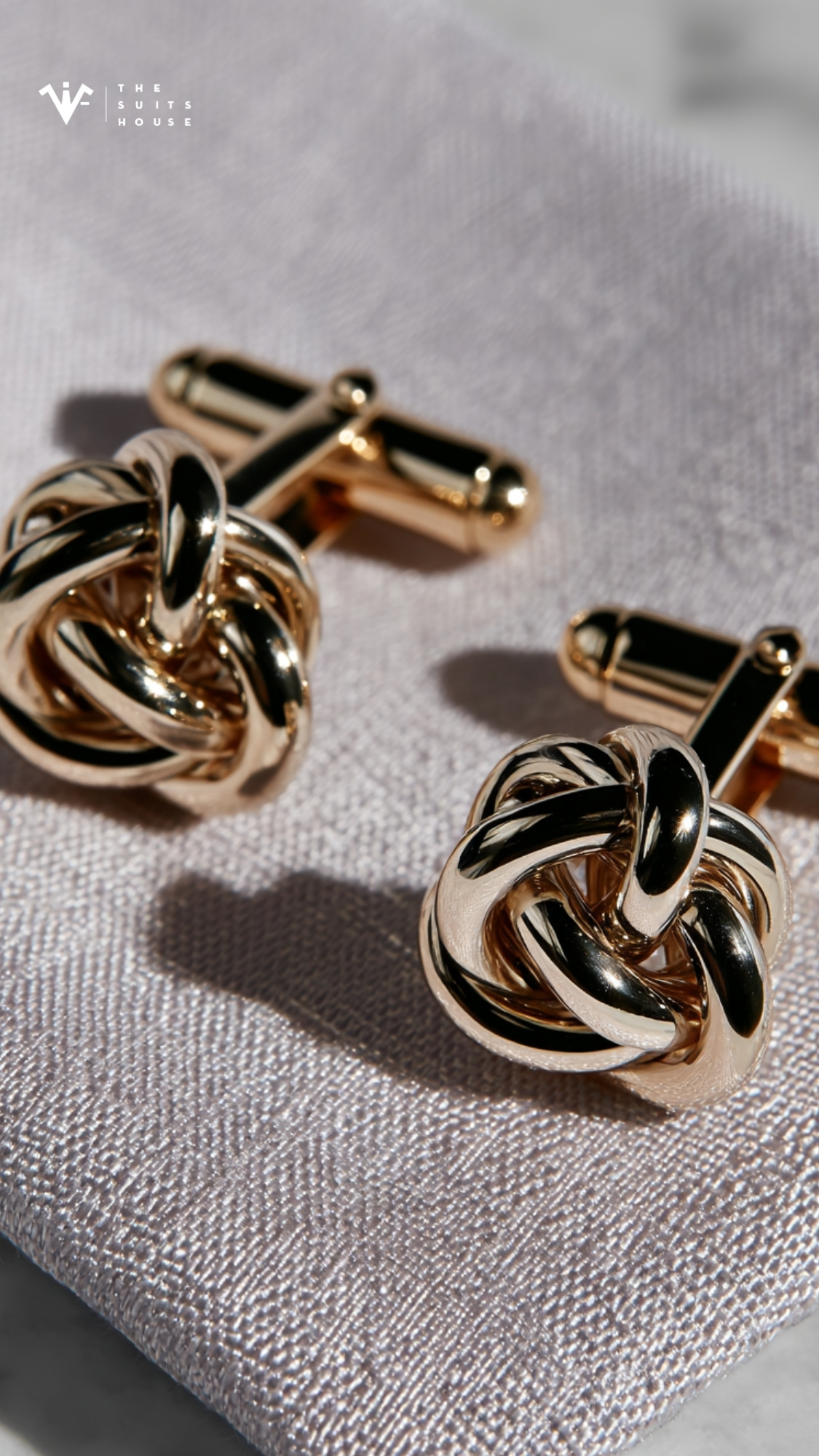 Cặp cufflinks hình nút thắt mạ vàng cao cấp thể hiện sức mạnh của sự bền vững – nơi từng vòng xoắn hòa quyện tạo nên vẻ đẹp hài hòa và đẳng cấp.