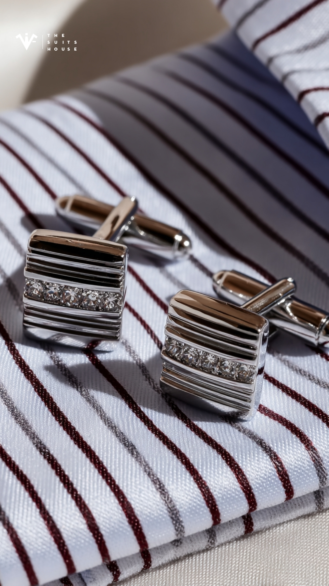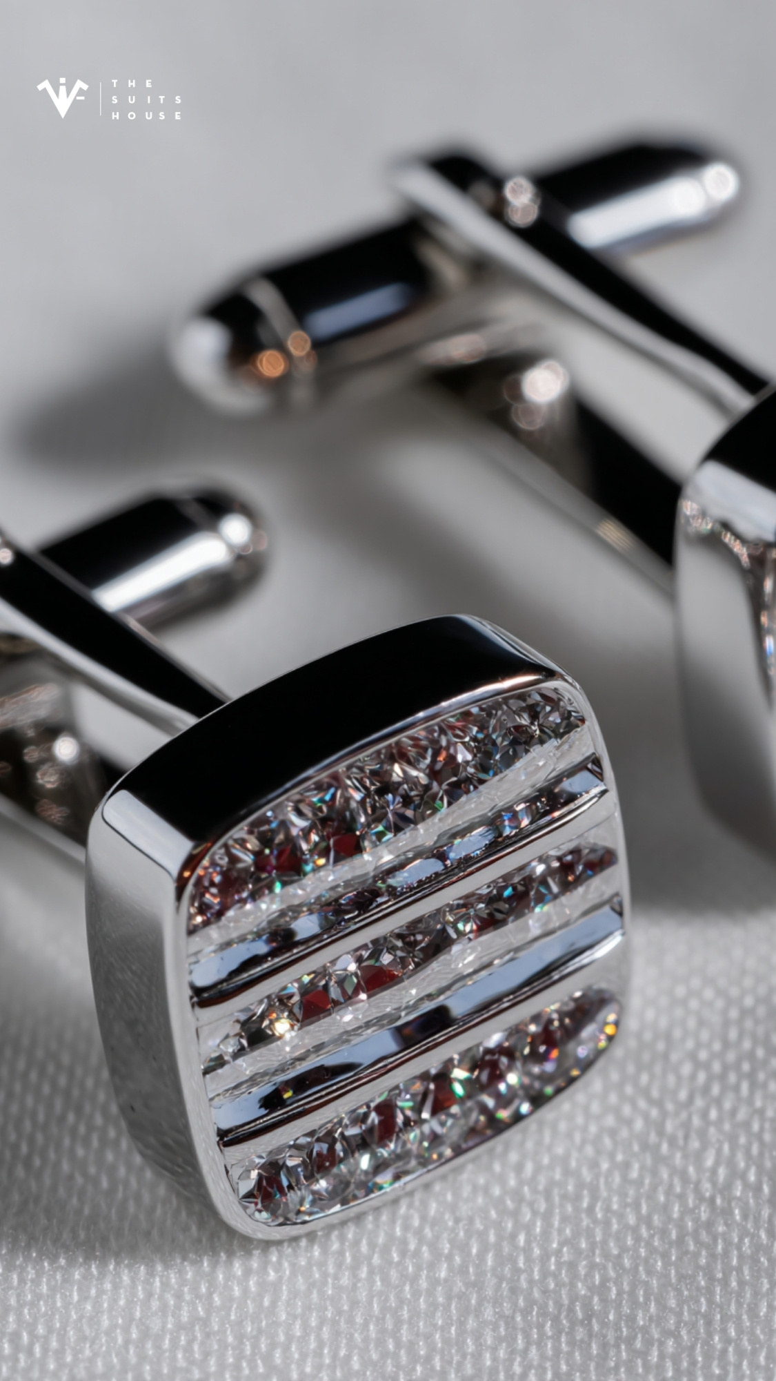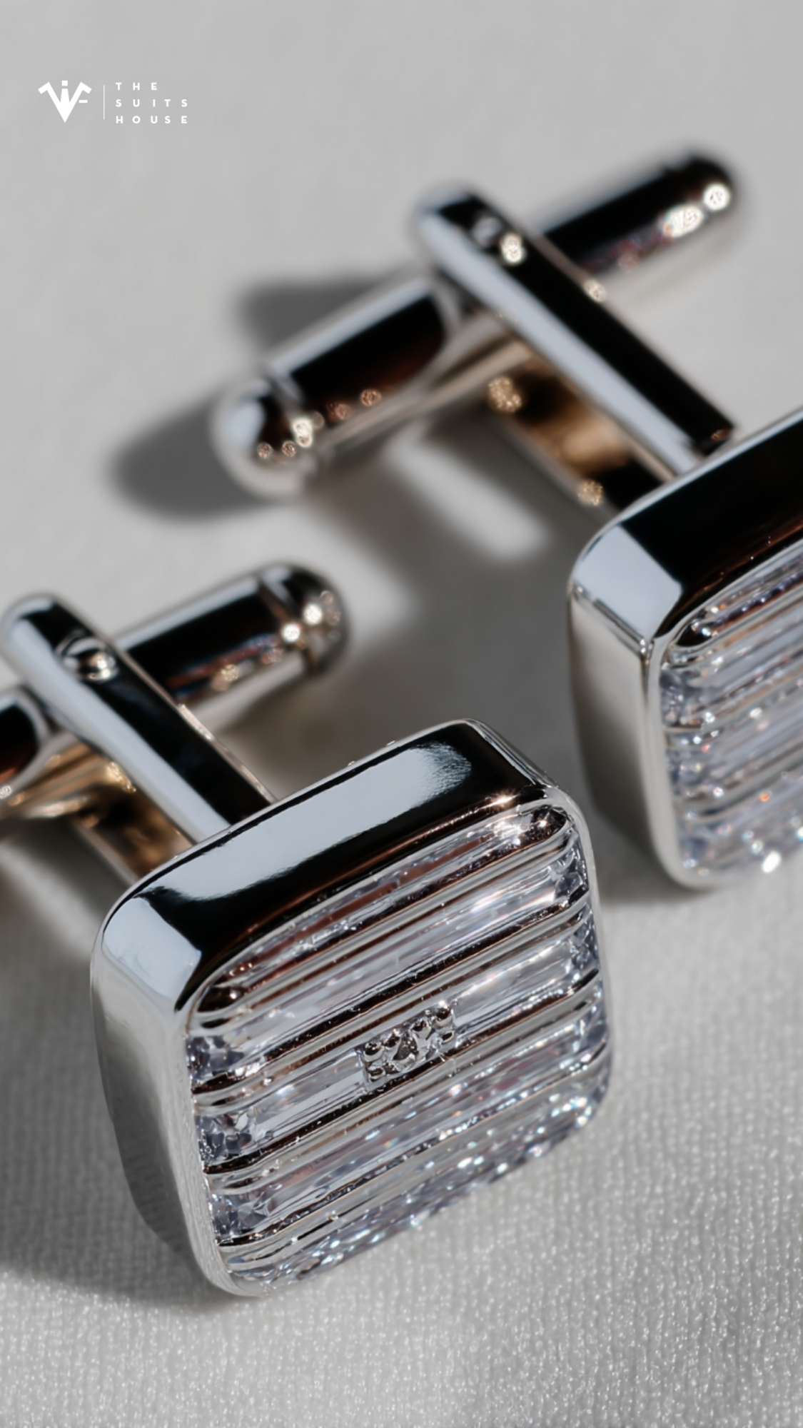 Đơn giản nhưng khác biệt, cặp cufflinks ánh bạc đính đá pha lê tinh tế là lựa chọn hoàn hảo cho những ai đề cao sự chỉn chu và chuẩn mực.