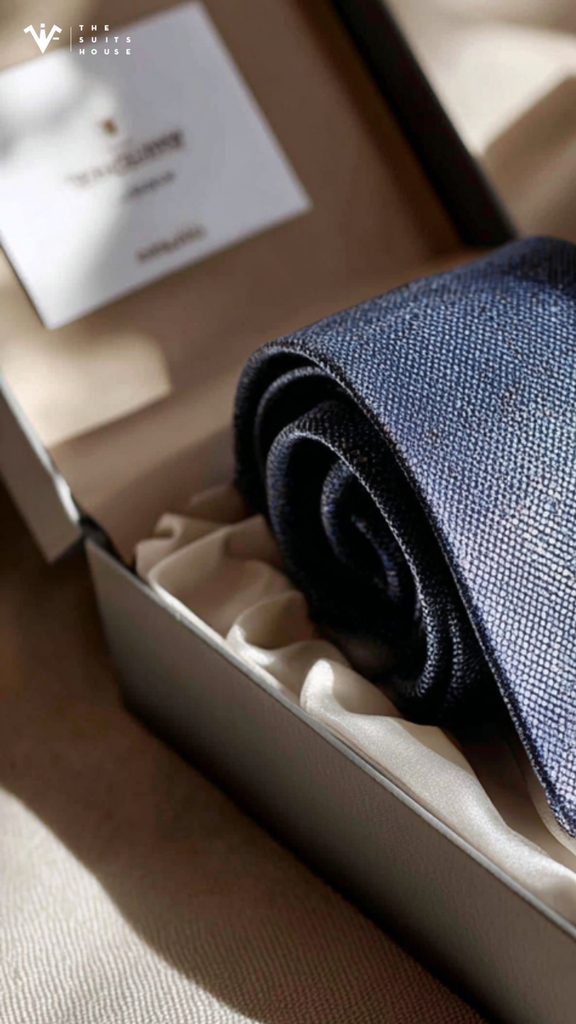 Cà vạt Denim Blue Linen mang hơi thở của phong cách hiện đại và tự do, được dệt từ linen pha silk cao cấp, tạo nên bề mặt vải mịn nhẹ, ánh lam chuyển sắc tinh tế dưới ánh sáng. Màu xanh denim trung tính giúp dễ dàng phối cùng nhiều tone suit, mang lại vẻ thanh lịch, trẻ trung nhưng vẫn giữ được nét đĩnh đạc.