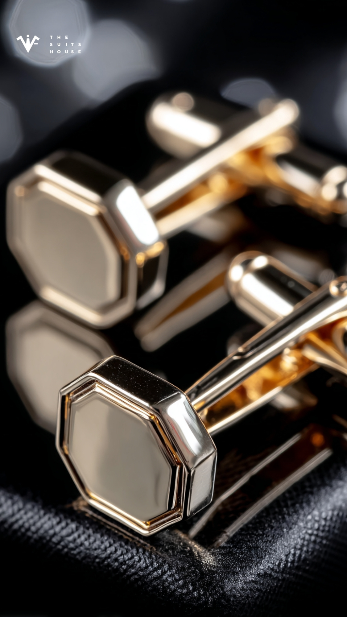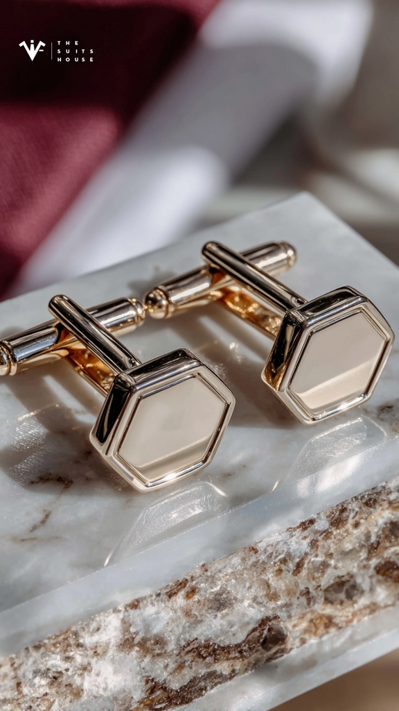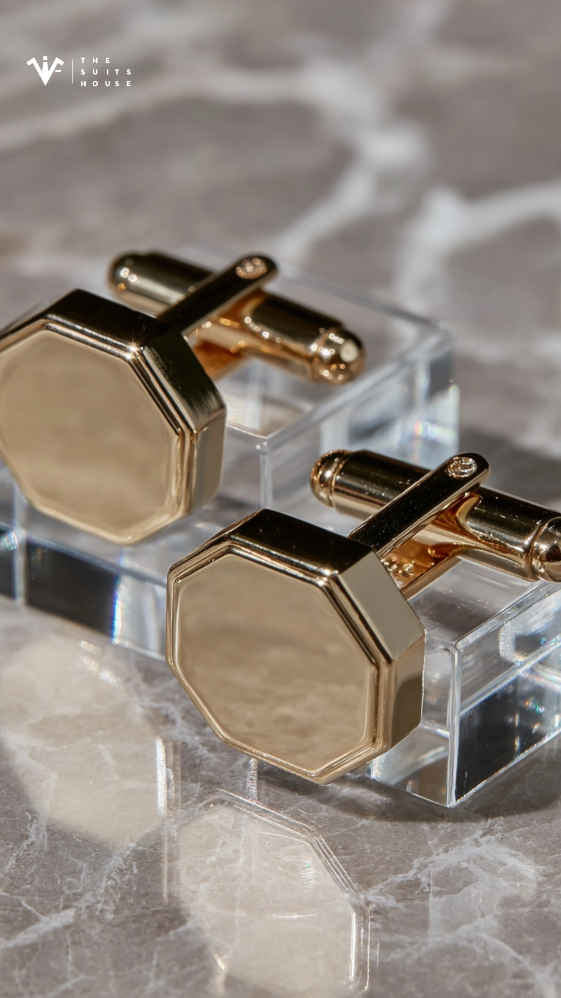 Sang trọng và chuẩn mực, cặp cufflinks hình lục giác mạ vàng là biểu tượng của sự cân đối và đẳng cấp nam tính.