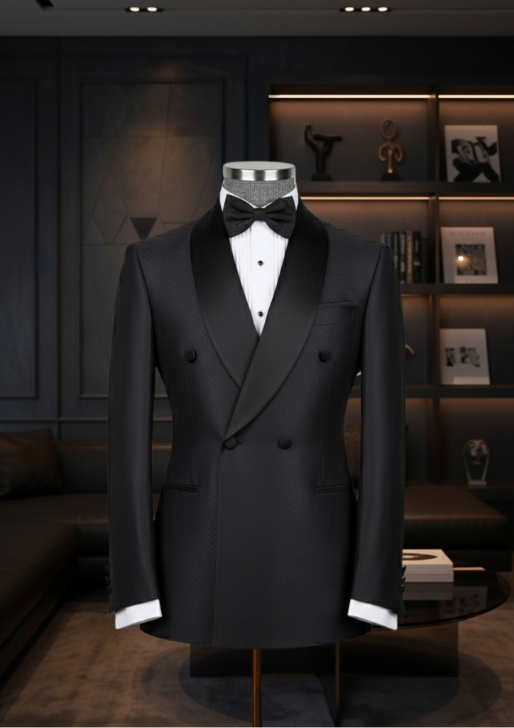 Với thiết kế hai hàng khuy độc đáo, bộ Tuxedo này mang lại vẻ ngoài đĩnh đạc, mạnh mẽ và lịch lãm vượt thời gian.