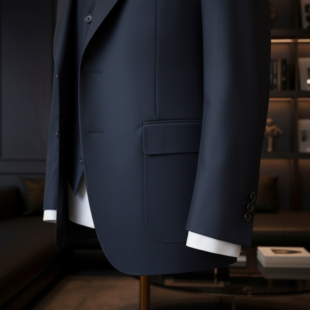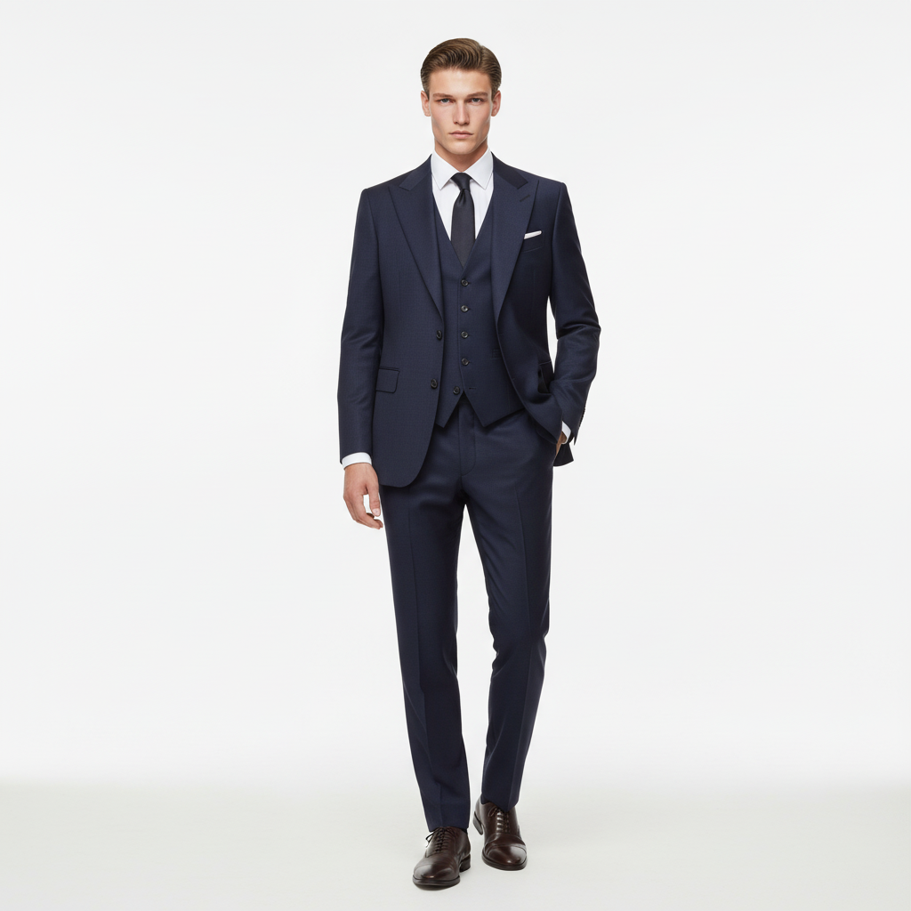 Bộ Admiral Peak là sự kết hợp hoàn hảo giữa vẻ đẹp cổ điển và sự uy quyền hiện đại. Với sắc Xanh Navy Sâu (Deep Navy), đây là bộ trang phục khẳng định sự chuyên nghiệp, tin cậy và đẳng cấp tuyệt đối cho mọi quý ông thành công.