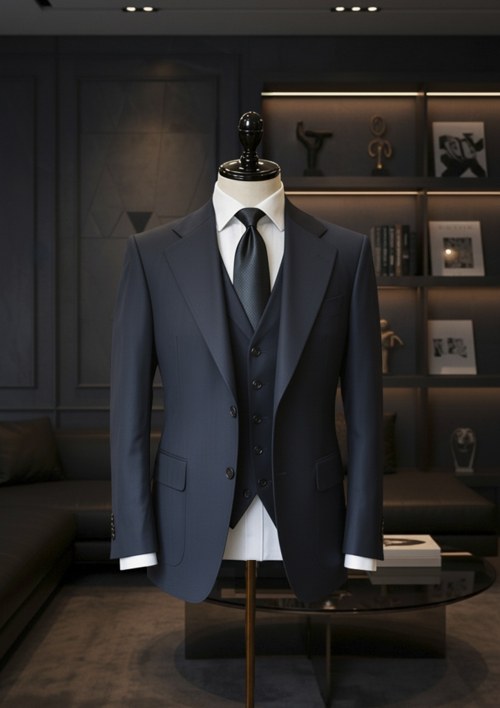 Bộ suit 3 mảnh này là biểu tượng của sự sắc nét và hoàn hảo, phù hợp cho cả môi trường kinh doanh cấp cao và các sự kiện trang trọng.