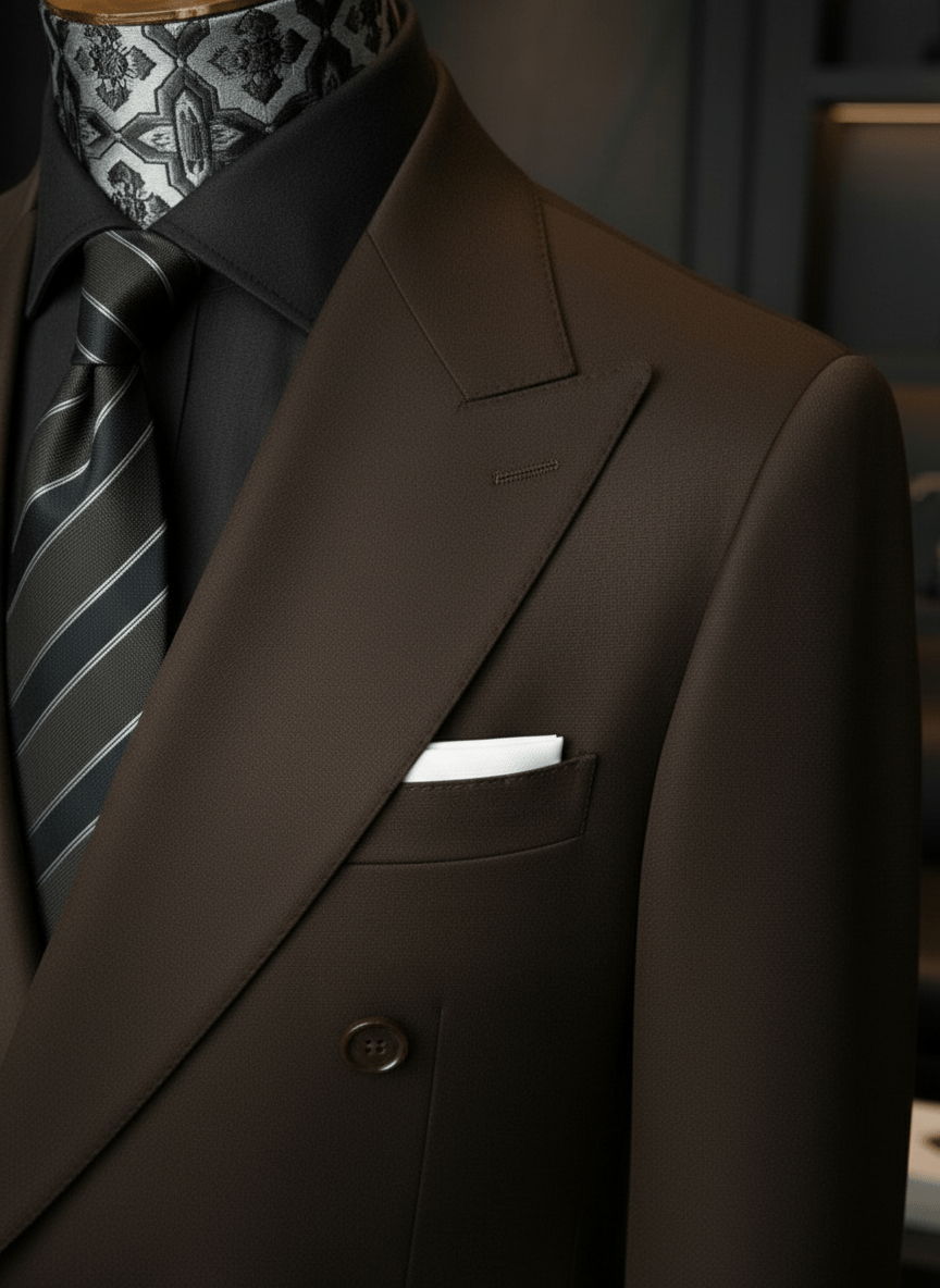 Tinh tế, trầm ổn và sang trọng, Brown Peak Lapel Suit là hiện thân của hình ảnh quý ông hiện đại: bản lĩnh, lịch thiệp và luôn kiểm soát mọi tình huống bằng phong thái của mình.