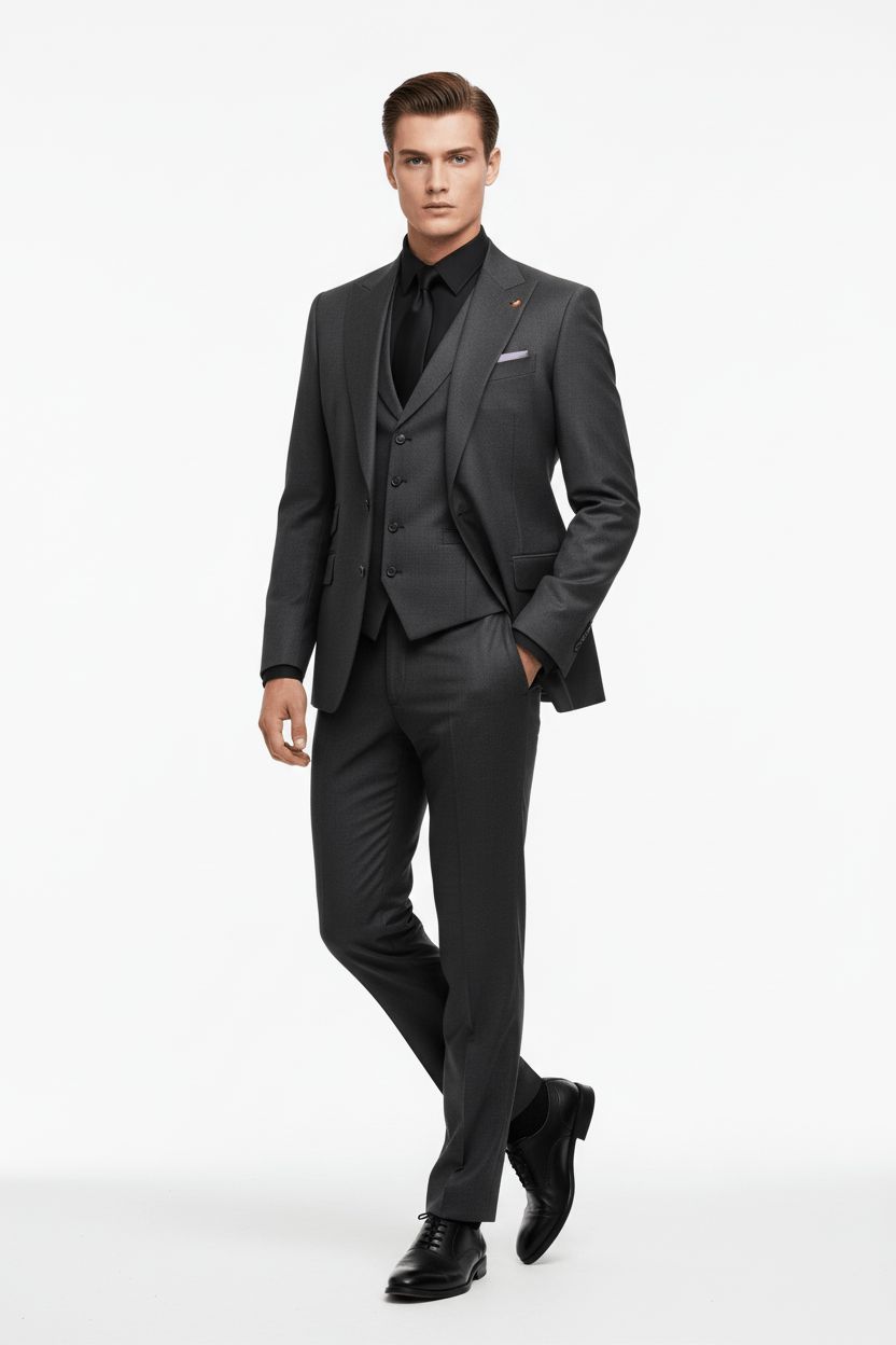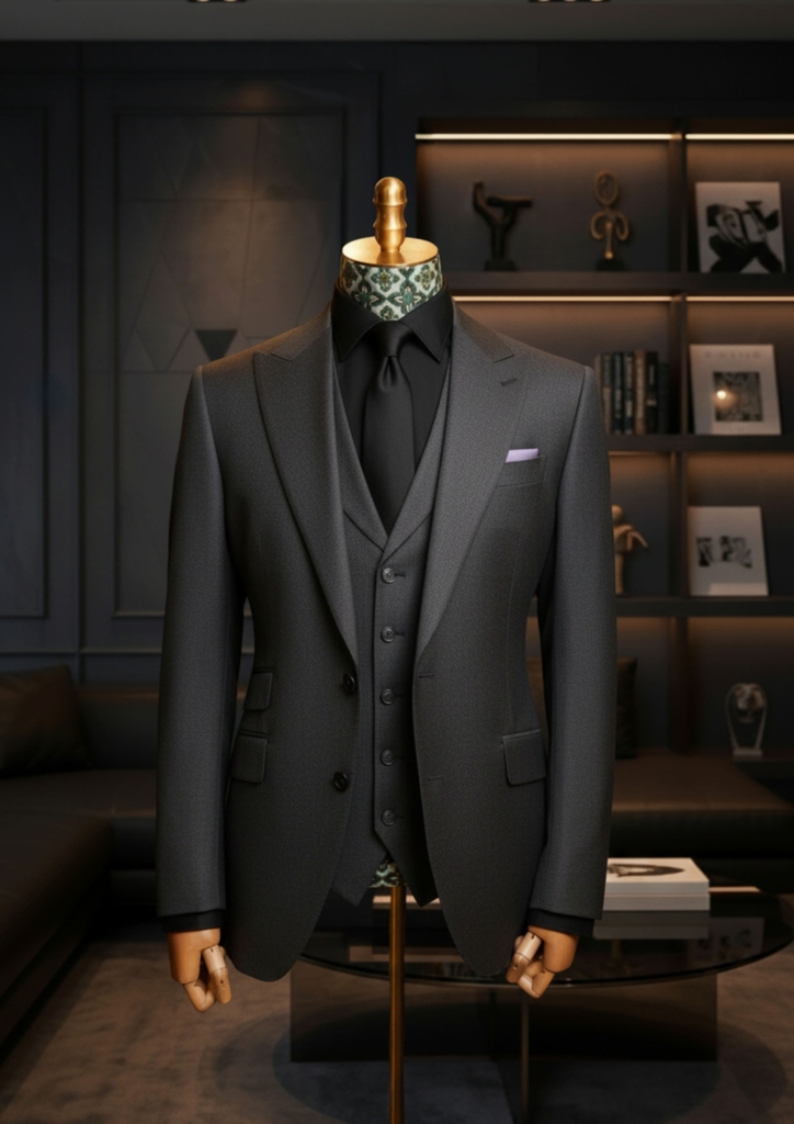 Sở hữu sắc xám than trầm quyền lực, The Shadow Regent là lựa chọn dành cho người đàn ông biết cách để đẳng cấp lên tiếng thay cho lời nói. Bộ three-piece suit được may đo chuẩn xác, tôn vinh tỷ lệ cơ thể cùng đường cắt tinh gọn đặc trưng của The Suits House.