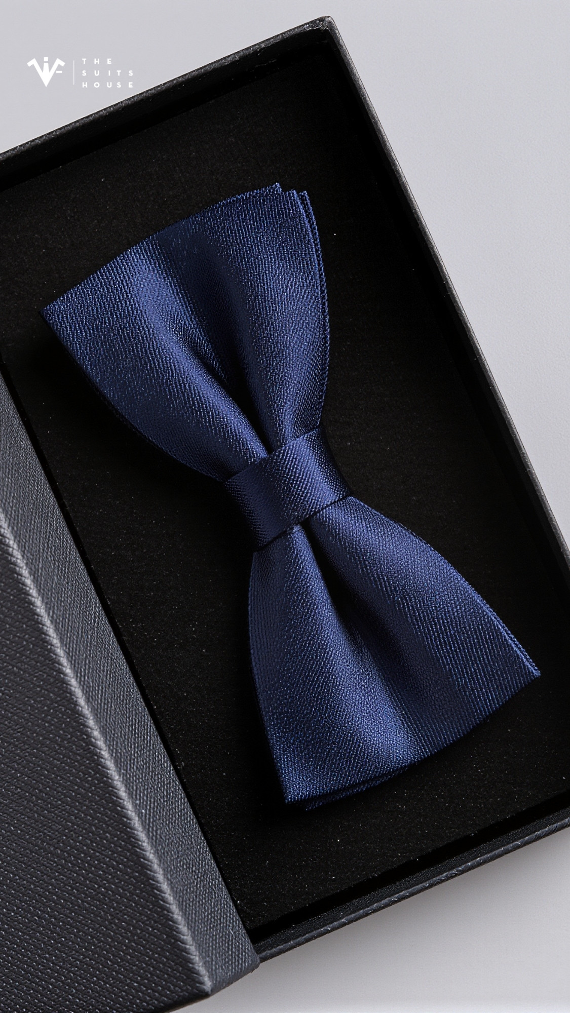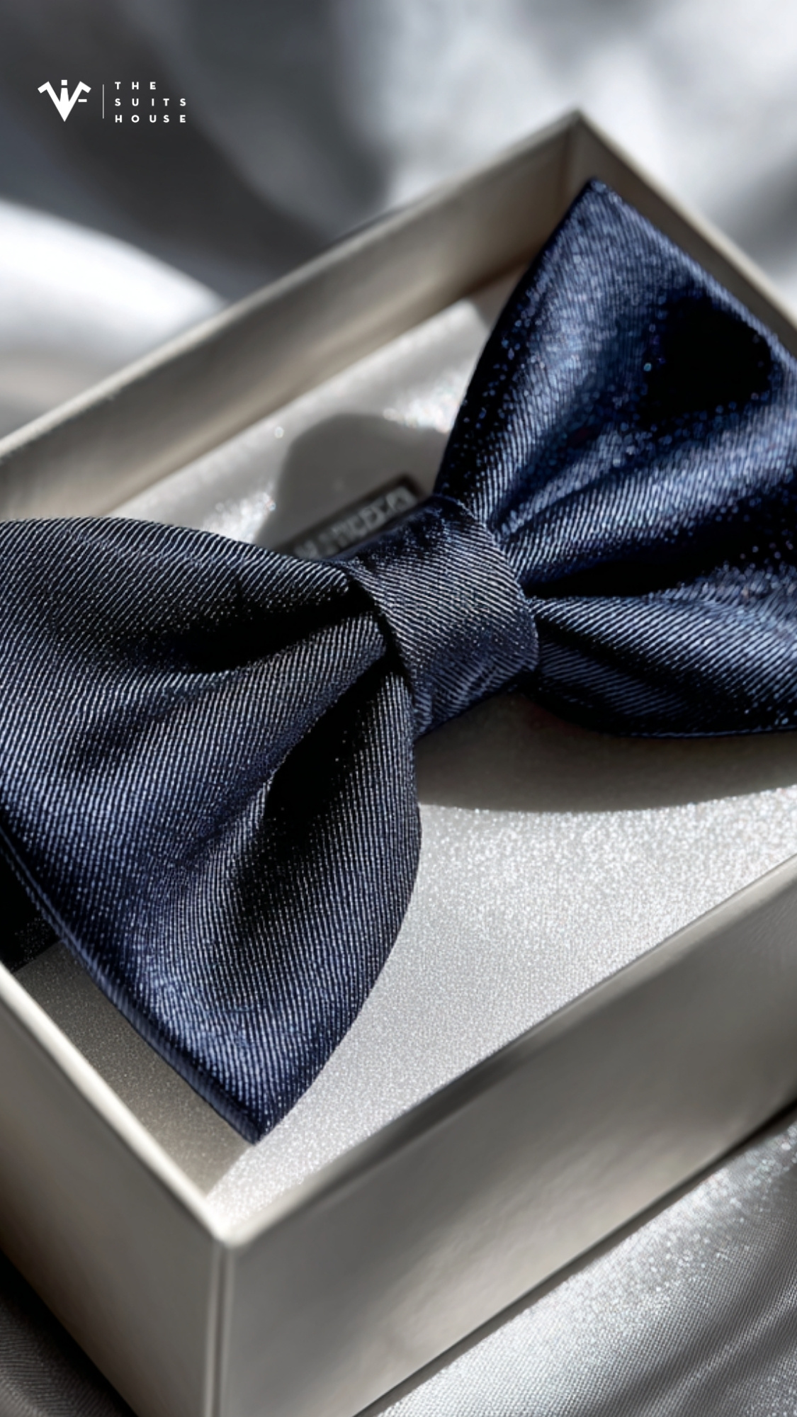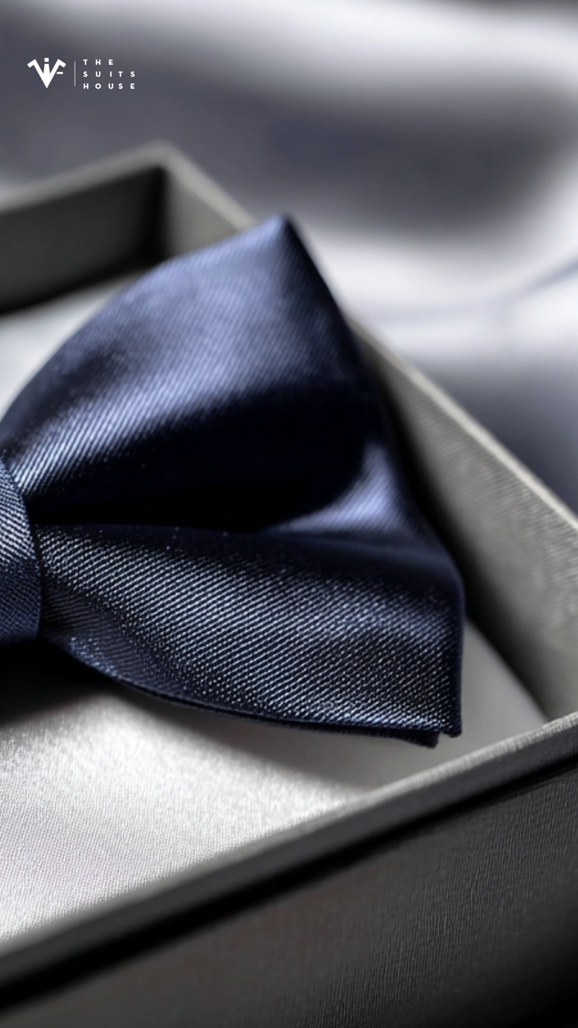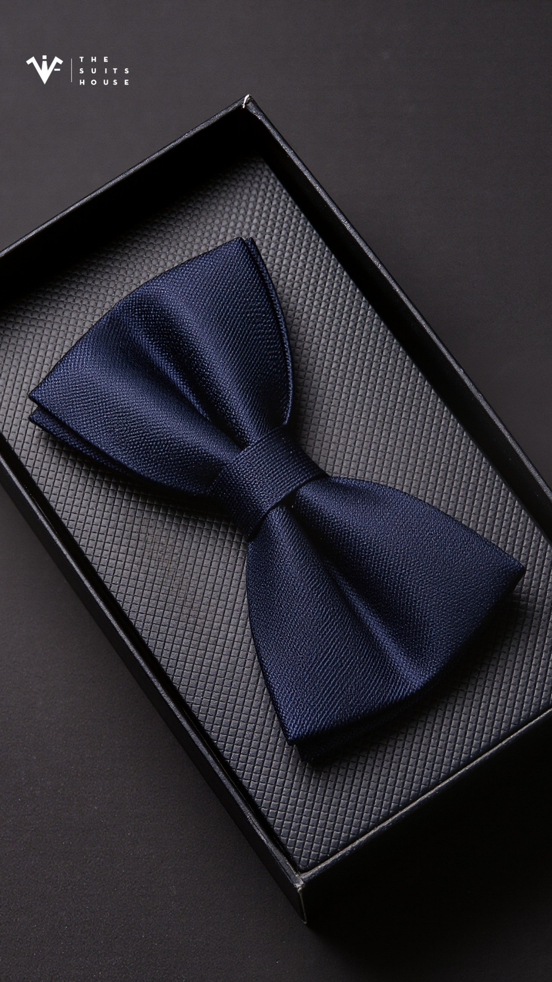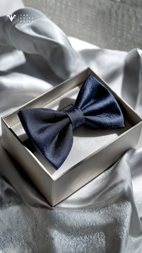 Lịch lãm và quyền lực, chiếc nơ lụa xanh navy đậm là biểu tượng của sự tinh tế và bản lĩnh của quý ông hiện đại.