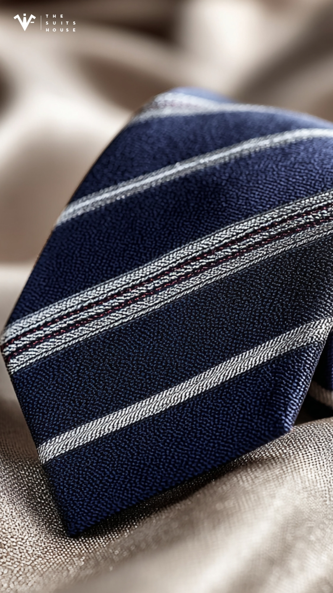 Tông xanh navy trầm sang trọng kết hợp cùng cấu trúc dệt nổi giúp bề mặt vải có chiều sâu, giữ dáng hoàn hảo khi thắt. Một thiết kế lý tưởng cho những buổi ký kết, gặp gỡ đối tác hoặc bất kỳ khoảnh khắc nào cần sự hiện diện của bản lĩnh và phong thái.