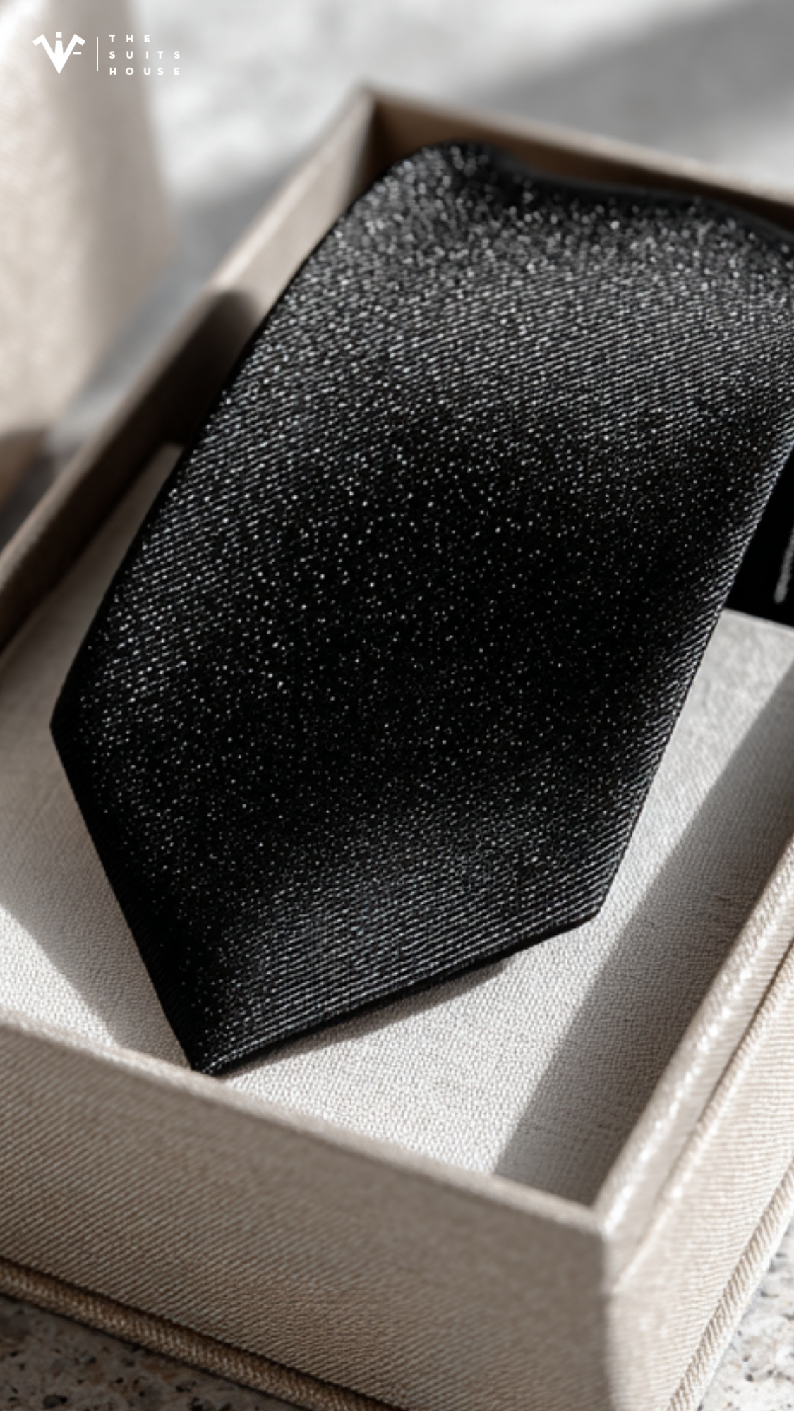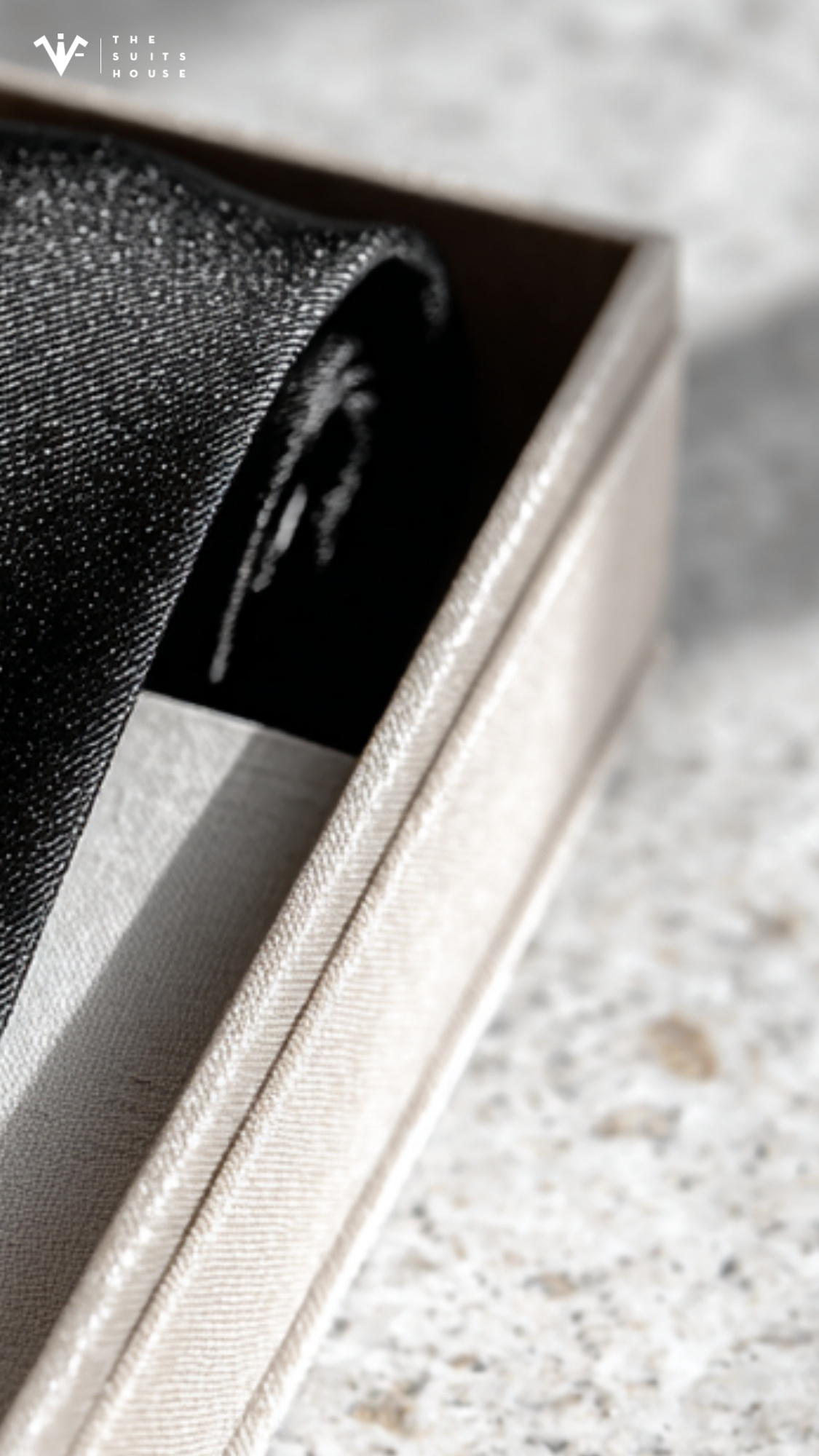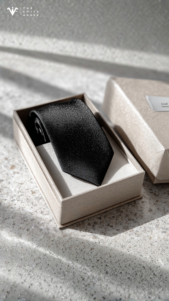 Sự tối giản chưa bao giờ thôi cuốn hút – Noir Silk Tie là hiện thân của phong thái tinh gọn và quyền lực trầm lặng. Chất liệu lụa satin thượng hạng tạo nên bề mặt bóng mượt, ánh nhẹ dưới ánh sáng, mang lại cảm giác sang trọng tuyệt đối khi kết hợp cùng bất kỳ bộ suit nào. Màu đen sâu cổ điển giúp tôn lên nét mạnh mẽ, đồng thời giữ trọn vẻ lịch lãm trong mọi hoàn cảnh – từ công việc, tiệc tối đến những khoảnh khắc riêng tư của người đàn ông bản lĩnh.
