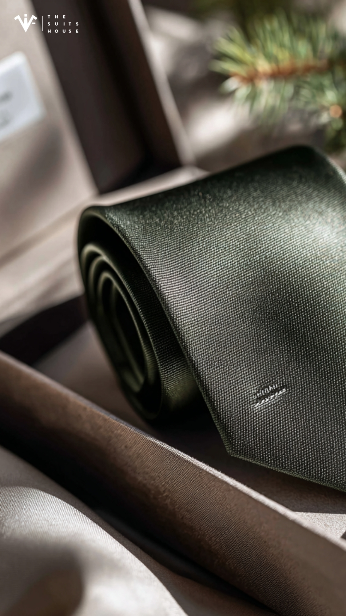 Mang sắc xanh thông trầm mạnh mẽ, cà vạt Pine Green được chế tác từ lụa dệt satin cao cấp, bề mặt ánh mờ tinh tế gợi cảm giác vững chãi và điềm đạm. Mỗi sợi dệt đều được xử lý tỉ mỉ, mang lại độ rủ chuẩn và độ bóng nhẹ – vừa đủ để nổi bật, nhưng không phô trương.