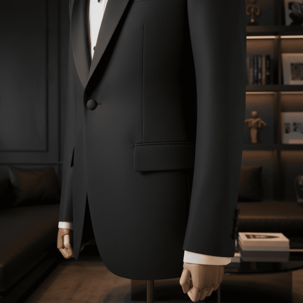 Chất liệu Italian wool blend cao cấp, bề mặt mịn lì kết hợp cùng ve satin bóng, tạo nên độ tương phản vừa đủ để tôn lên cấu trúc vai và dáng người. Form 1 khuy cổ điển, được cắt dựng tỉ mỉ theo chuẩn The Suits House, giúp tôn dáng và tạo đường cong tự nhiên, đầy tinh tế.