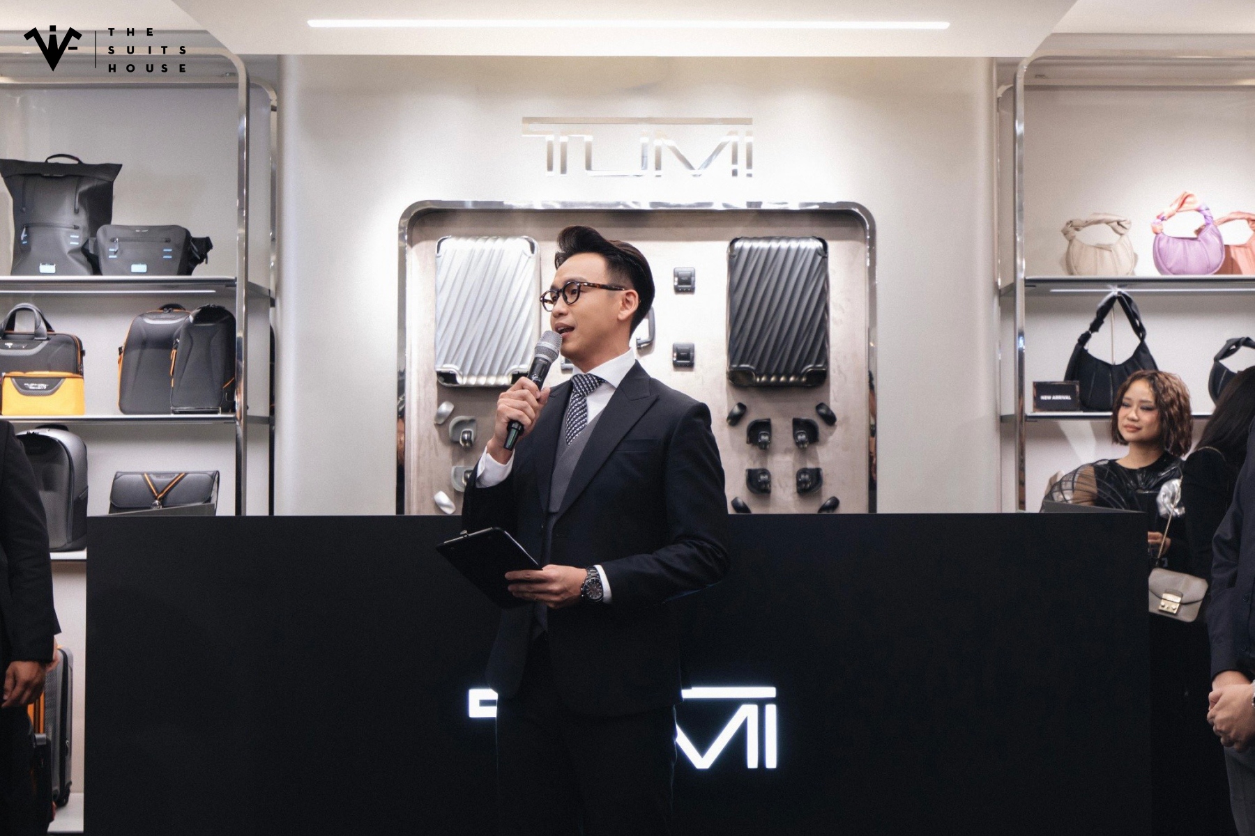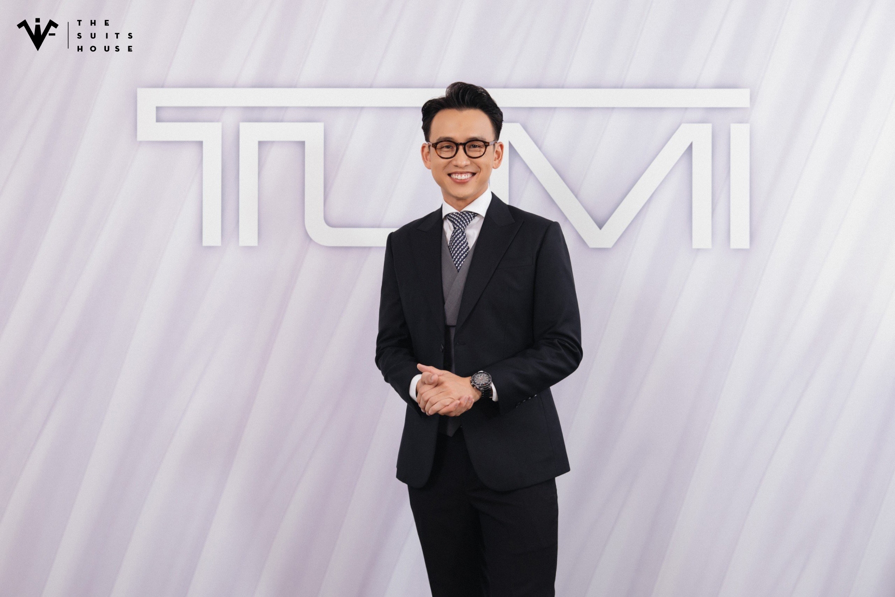 MC Quang Bảo không chỉ là một gương mặt quen thuộc mà còn luôn xuất hiện trước khán giả với phong cách chỉnh chu và lịch lãm. Tại sự kiện của Tumi, anh đã chọn cho mình bộ suit màu đen đi cùng chiếc gile xám tinh tế, tạo nên sức hút mạnh mẽ và thời thượng của riêng mình.
