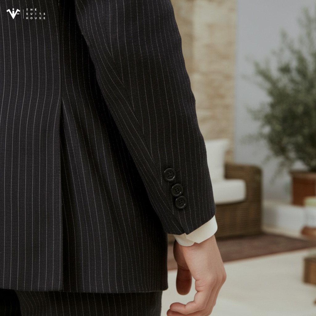 Cạp cao bản to cùng ve áo nhọn sắc sảo là những chi tiết tạo nên điểm nhấn độc đáo, khẳng định sự chỉn chu và cá tính của người đàn ông The Suits House. Mỗi chi tiết đều được xử lý tinh tế để mang đến tổng thể cân bằng giữa truyền thống và hiện đại, giữa sự tinh tế và bản lĩnh riêng biệt.