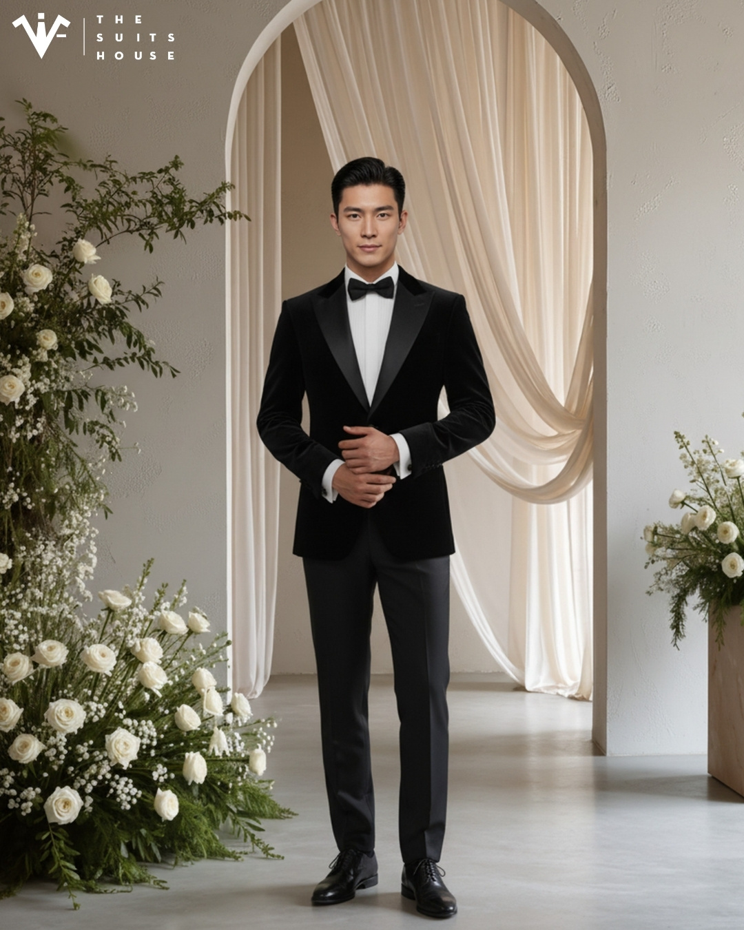 The Suits House lựa chọn chất liệu wool blend nhập khẩu với độ rũ nhẹ và thoáng khí cao, giúp người mặc dễ dàng di chuyển, không bí bách suốt buổi lễ.